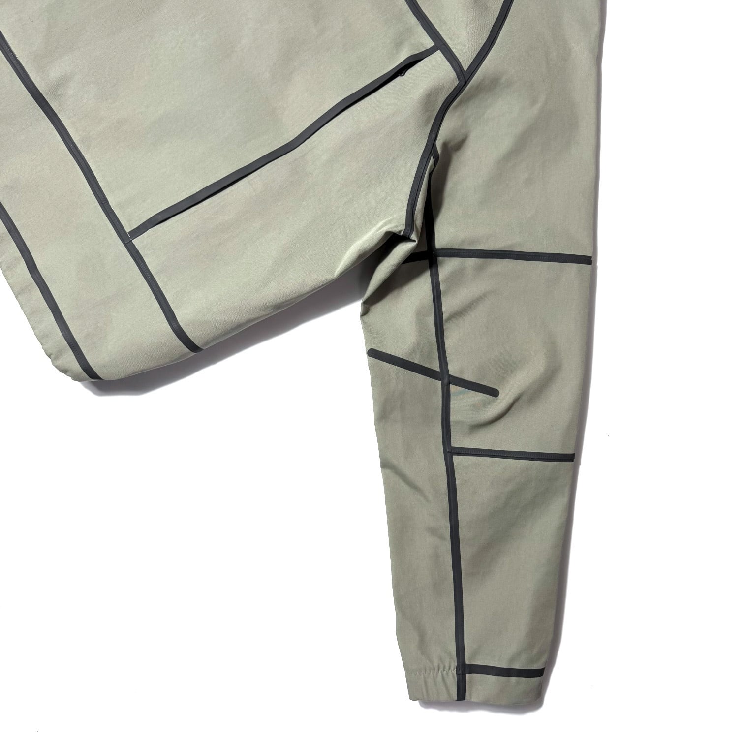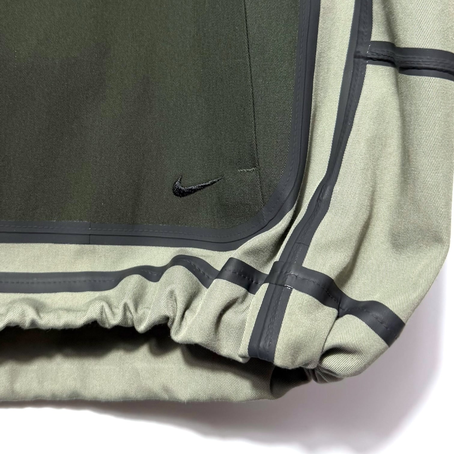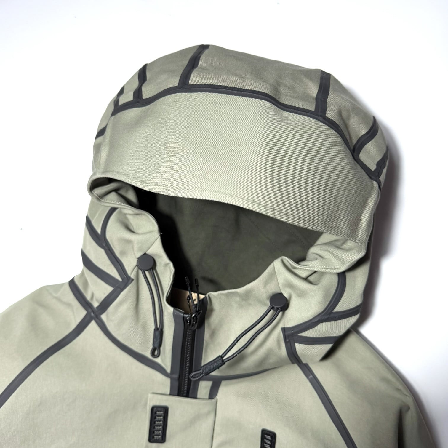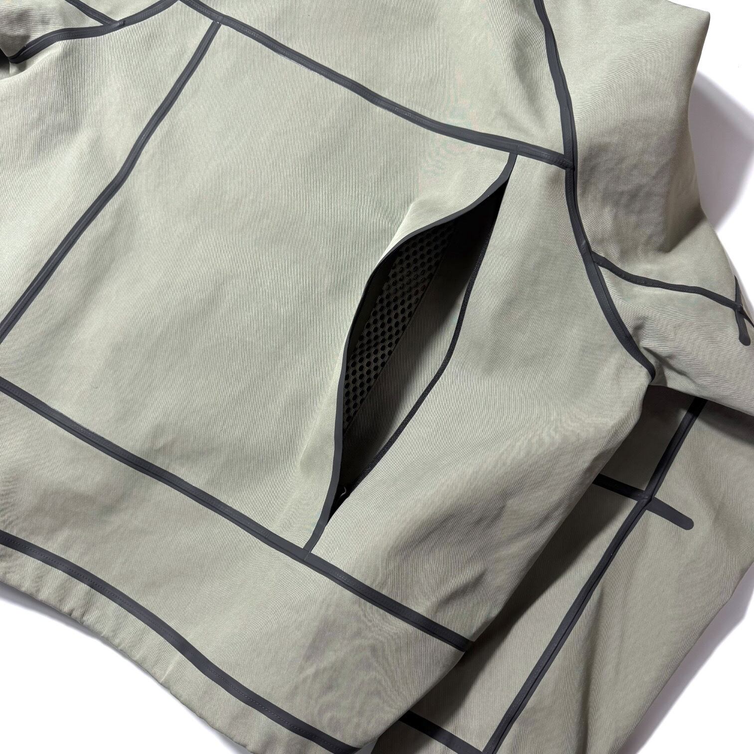 撥水加工にコットンナイロンのハリのある生地感、立体裁断デザイン