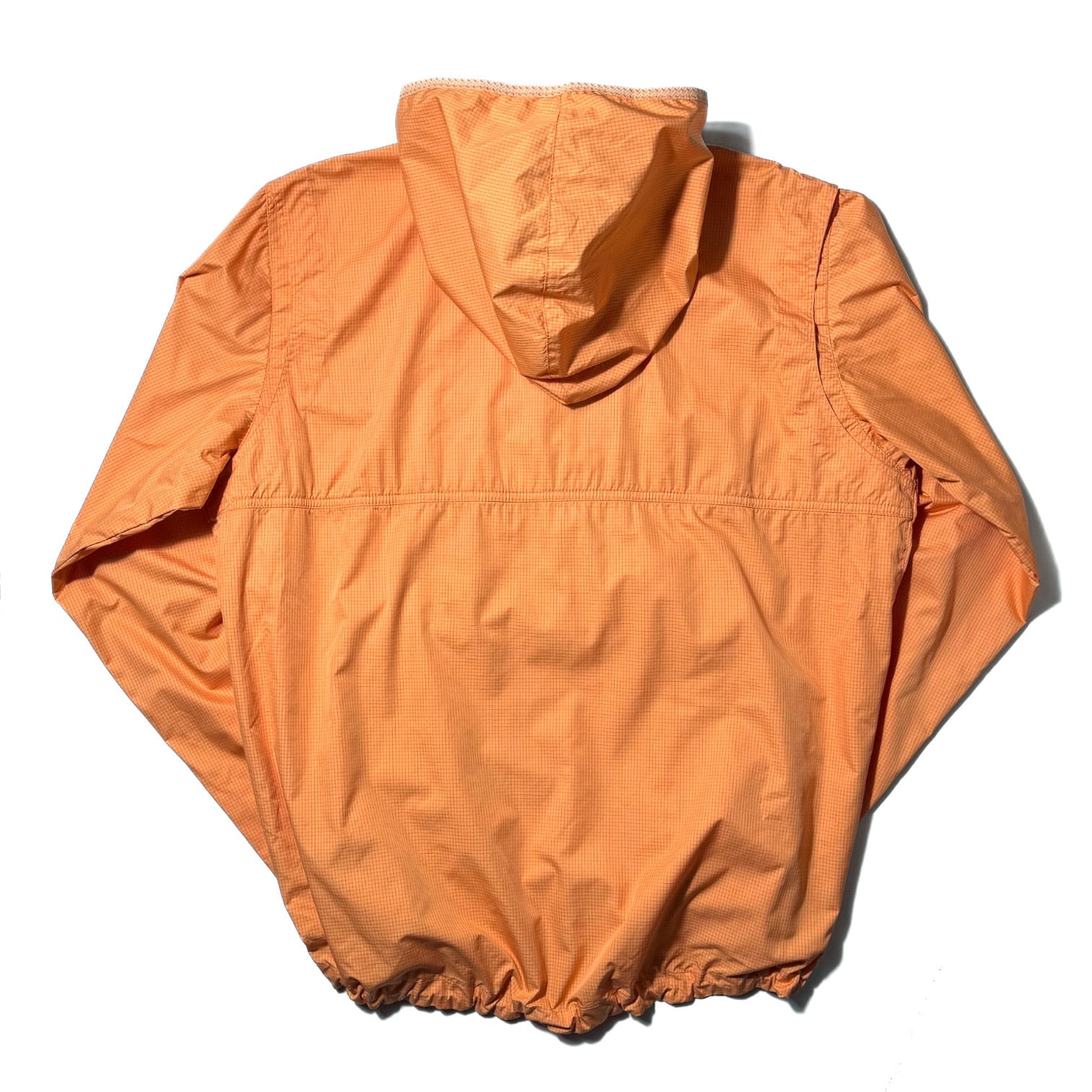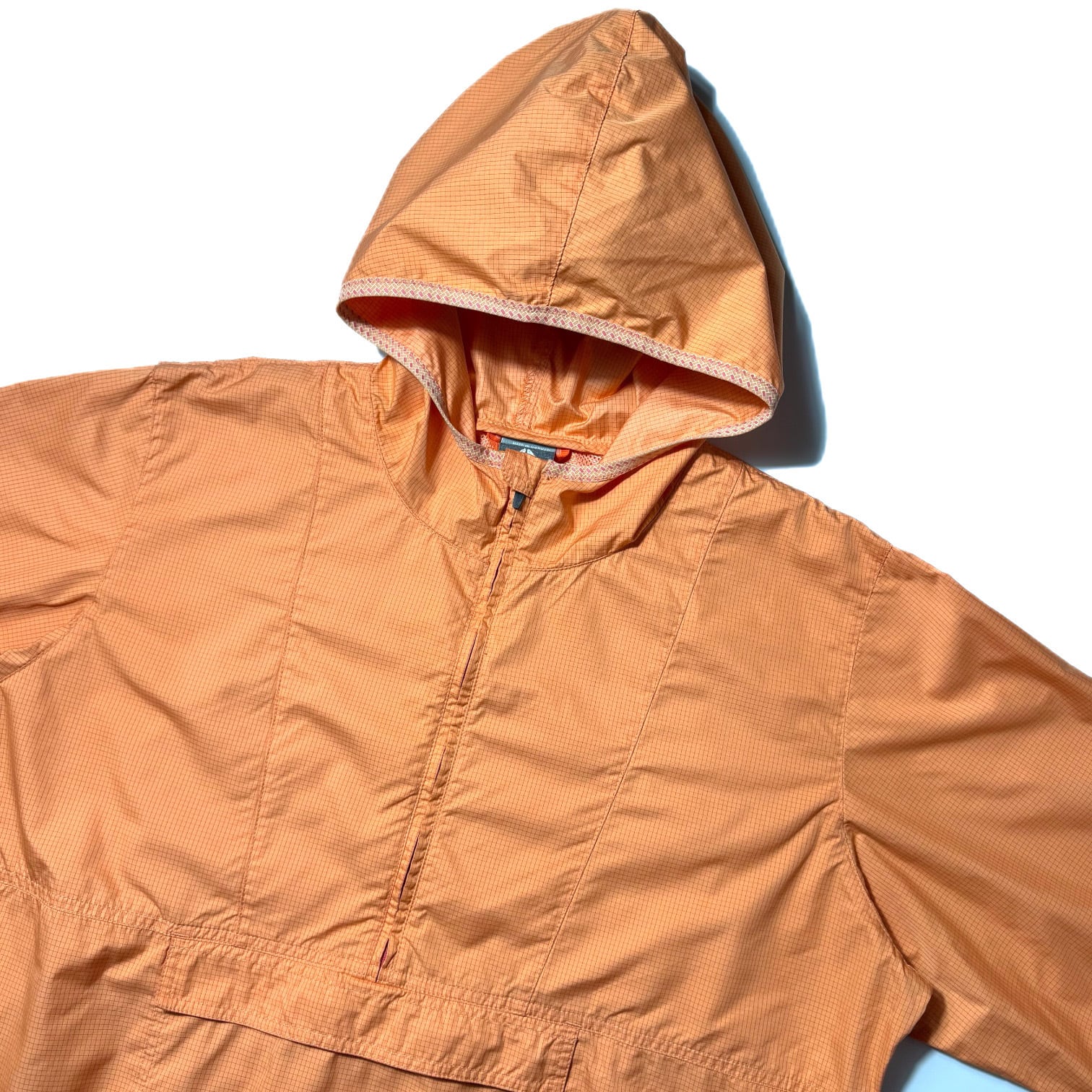 オレンジの細かいチェックが映えるライトシェルアノラック