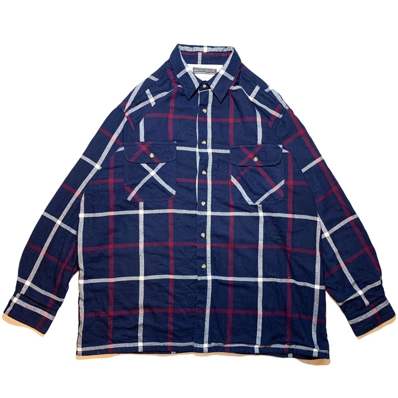 配色の良いチェックで、サイズも表記はXLになっておりますが、XXLのサイズ感ですのでパーカー等をレイヤードしていただいたも着用していただけるアイテムです。